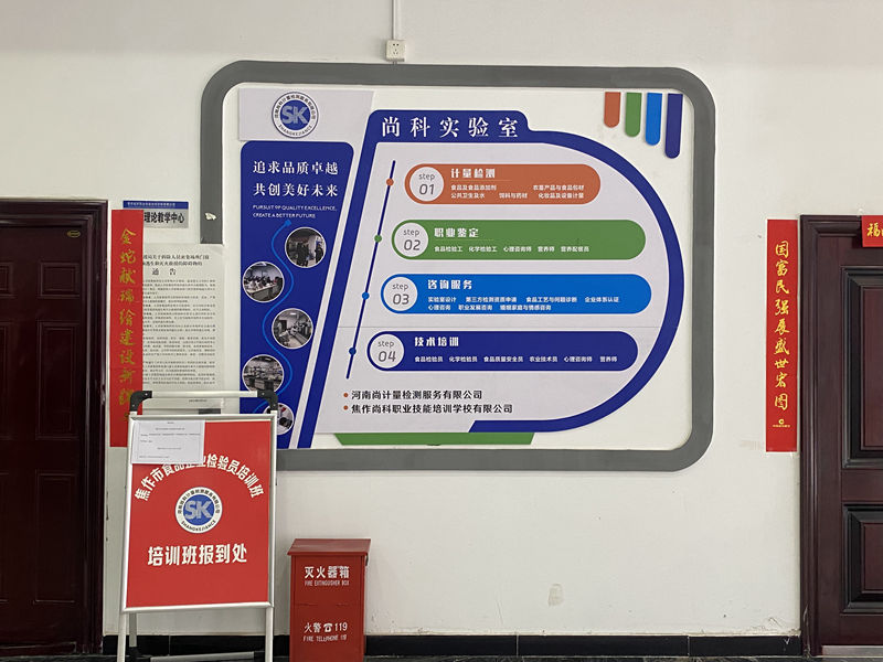 河南尚科计量检测服务有限公司成立于2017年,位于河南理工大学科技园,是一家专业从事检测、职业技能培训及生产技术研究与应用的综合性第三方机构。主要从事食品及相关产品、农畜产品、食品添加剂、食品包装、水质、饲料、药材、公共卫生、化妆品等领域的产品检测,技术人员培训及职业资格鉴定服务,食品技术开发等业务。